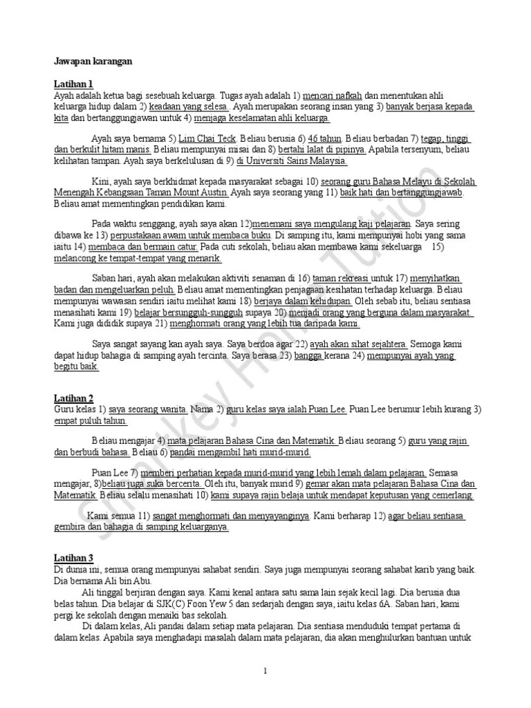 Contoh karangan bahasa melayu bm pt3 tingkatan 1 2 3 karangan ulasan . Keluarga saya terdiri daripada lima orang, iaitu ayah, emak, saya dan dua orang .